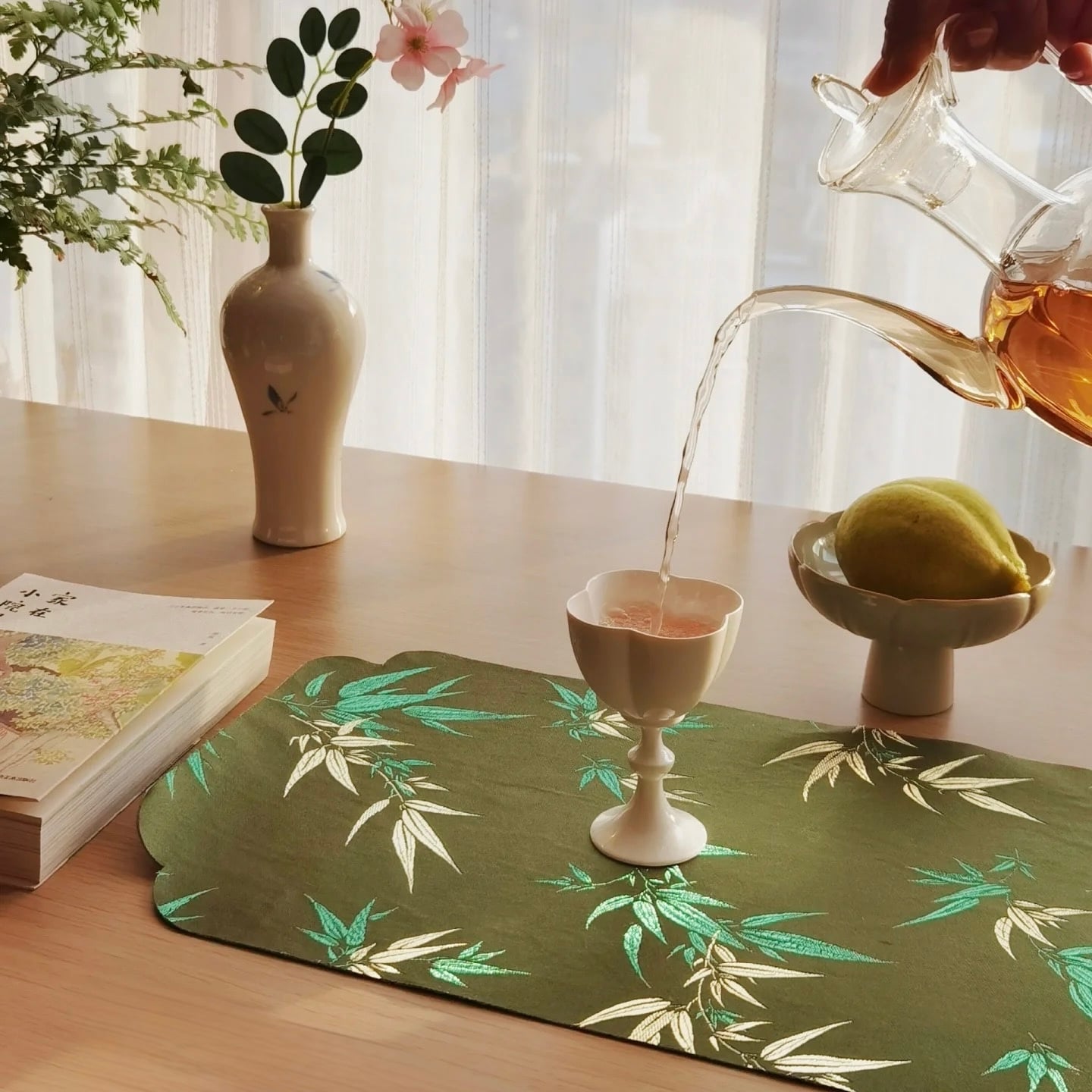 绝美!!【竹叶禅意】双面金丝绸缎刺绣茶席 新中式刺绣飘竹长款双面茶席茶巾吸水喝茶必备