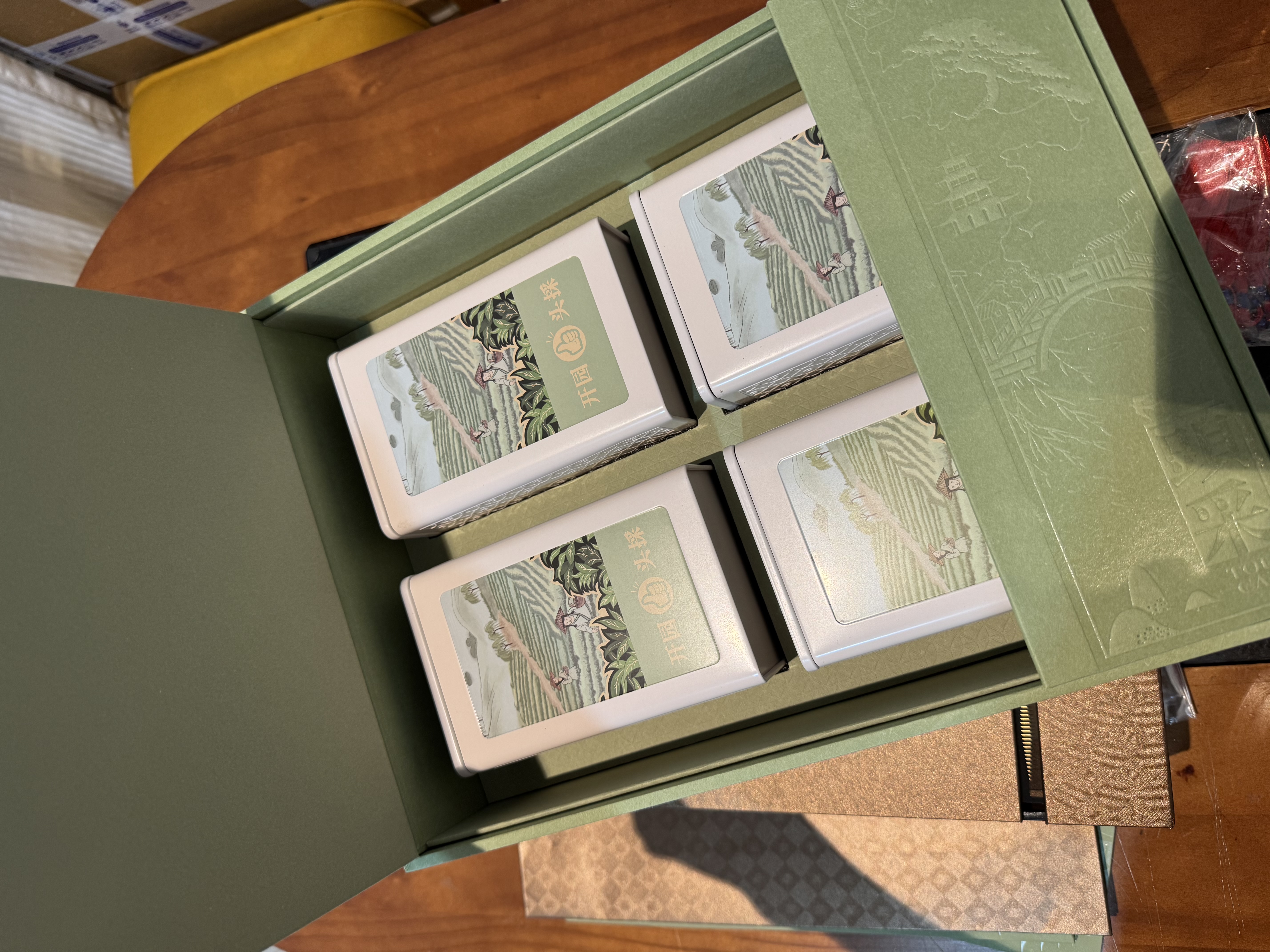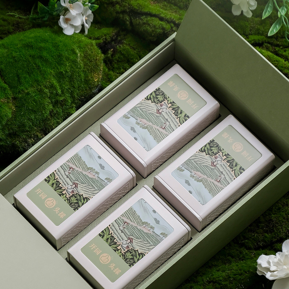礼盒内,四罐严密封装的清香型铁观音静候您的品鉴。每一罐,都凝聚着春天的气息与制茶师的匠心。