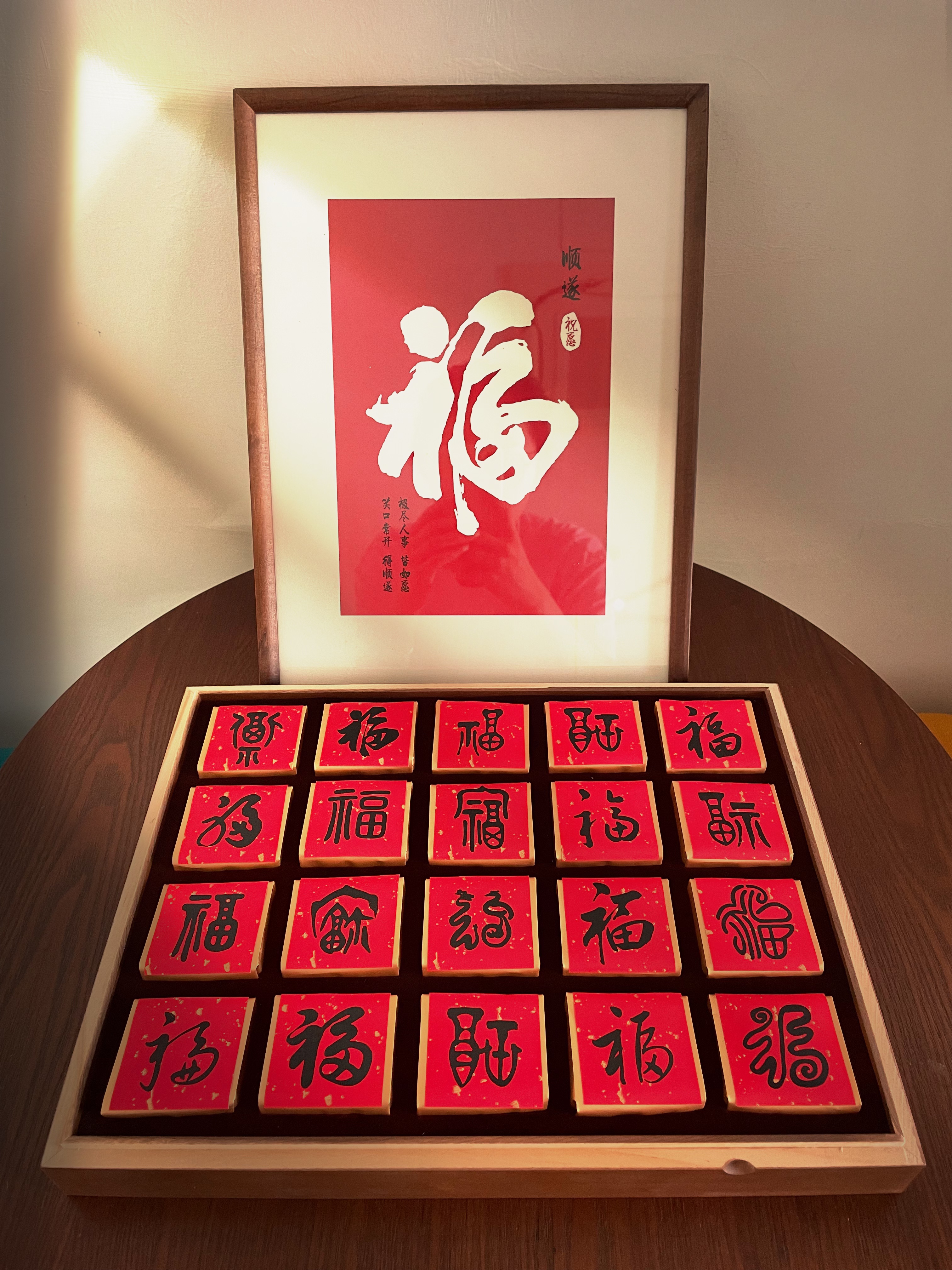 • Cultural Significance: The calligraphy character 'Fu' (福) on the gift box cover, paired with different styles of 'Fu,' brings abundant good fortune and conveys heartfelt blessings.