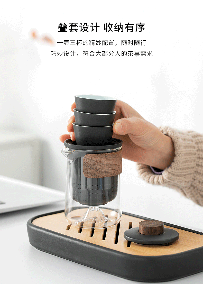 而这套便携式远山茶具,化繁为简