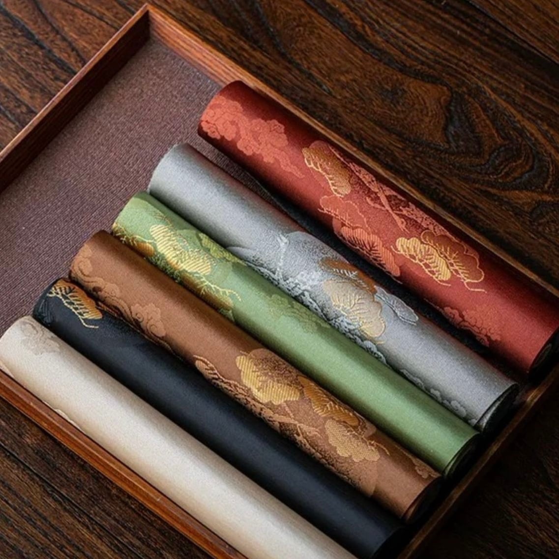 新中式茶席,融合东方美学与现代质感 一席藏山河,半卷映春秋 【非遗织造 · 云松为魂】 以濒临失传的「云松织锦」古法为核,取高山云松韧丝为纬、江南桑蚕丝为经,经「采松、煮丝、三晒三染」九重匠造,织就薄如蝉翼却承重千钧的茶席。纹理似松针层叠覆雪,触感温润如玉,遇茶汤不渗不染,于氤氲水汽中愈显流光。 【三色赋韵 · 席间风雅】 • 墨染时光(玄黑) 如砚台沉墨,松影入夜,适配紫砂、建盏等深色茶器。 ▶ 场景推荐:书房独饮、禅茶冥想、商务茶叙 • 银月来时(银白) 似月照雪松,银丝暗浮流转,衬托白瓷、琉璃器皿的清透。 ▶ 场景推荐:庭院赏月、文人茶会、新中式空间陈列 • 喜满鸿福(朱红) 若枫染秋山,霞落松间,与红木茶盘、鎏金茶具相映生辉。 ▶ 场景推荐:婚庆茶礼、节庆宴客、东方美学展厅 「茶席不应只是物的承载,更是东方时空的切片」 墨黑是茶烟散尽的余韵,银白是松间照月的留白,朱红是沸水冲开生命的绽放!