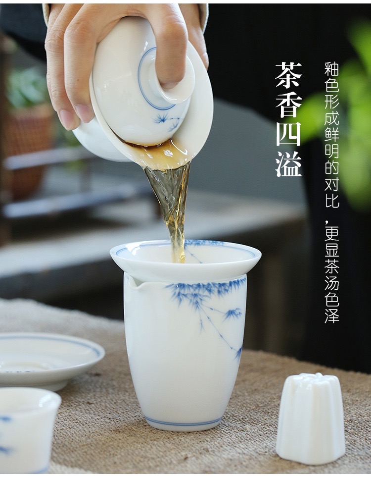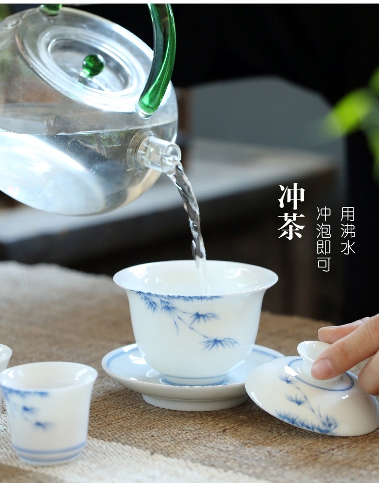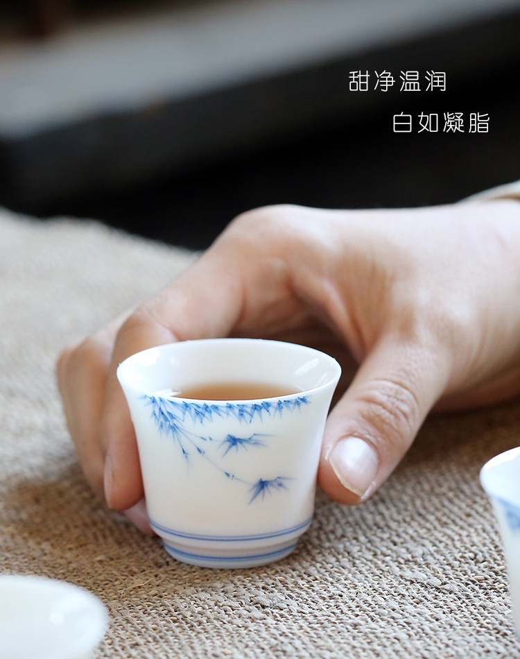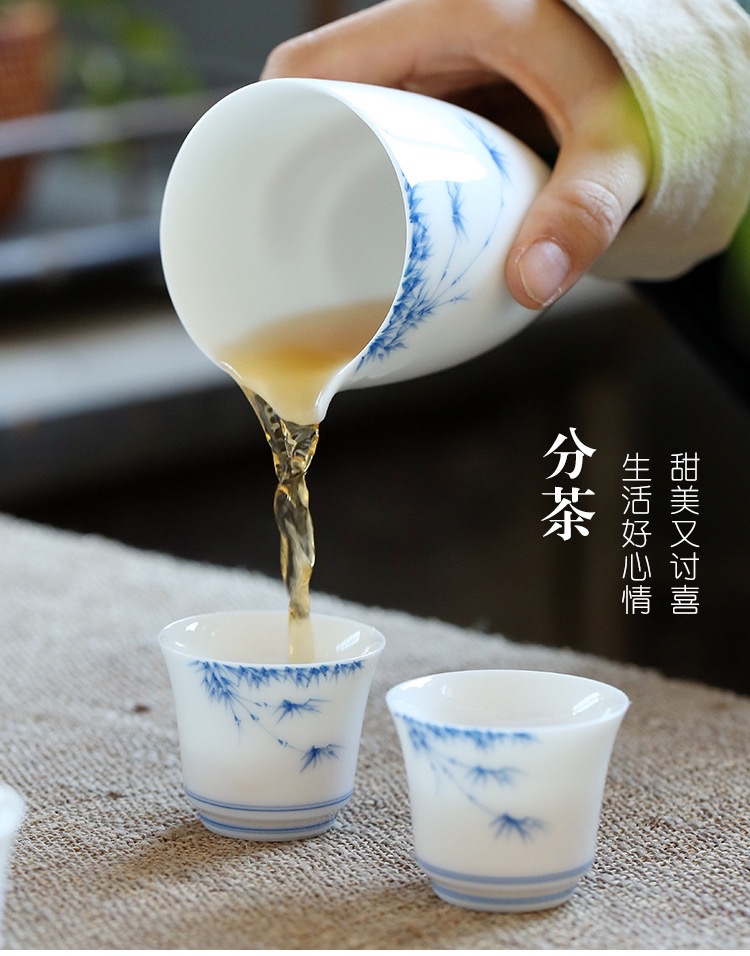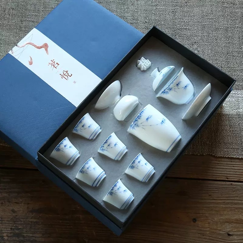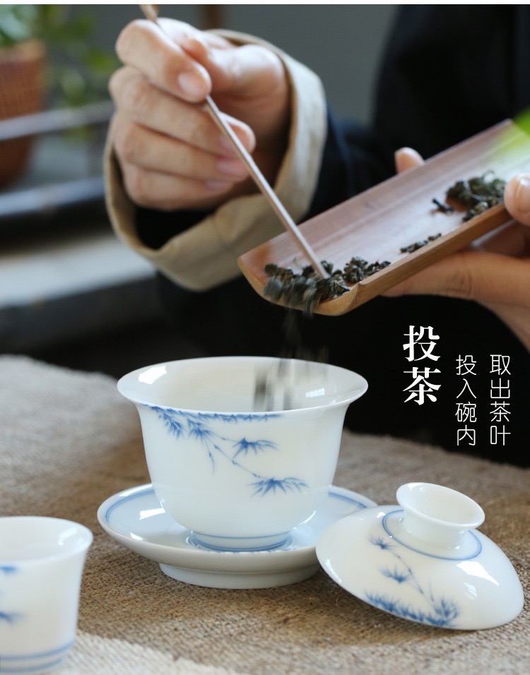 新款预售【玉泥手绘翠竹·茶具套装】白瓷茶具套装礼盒