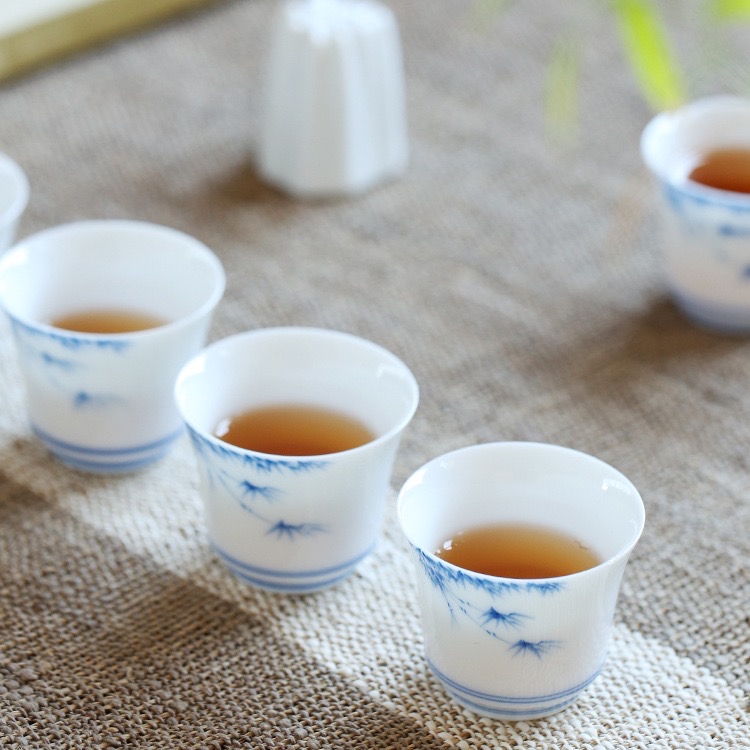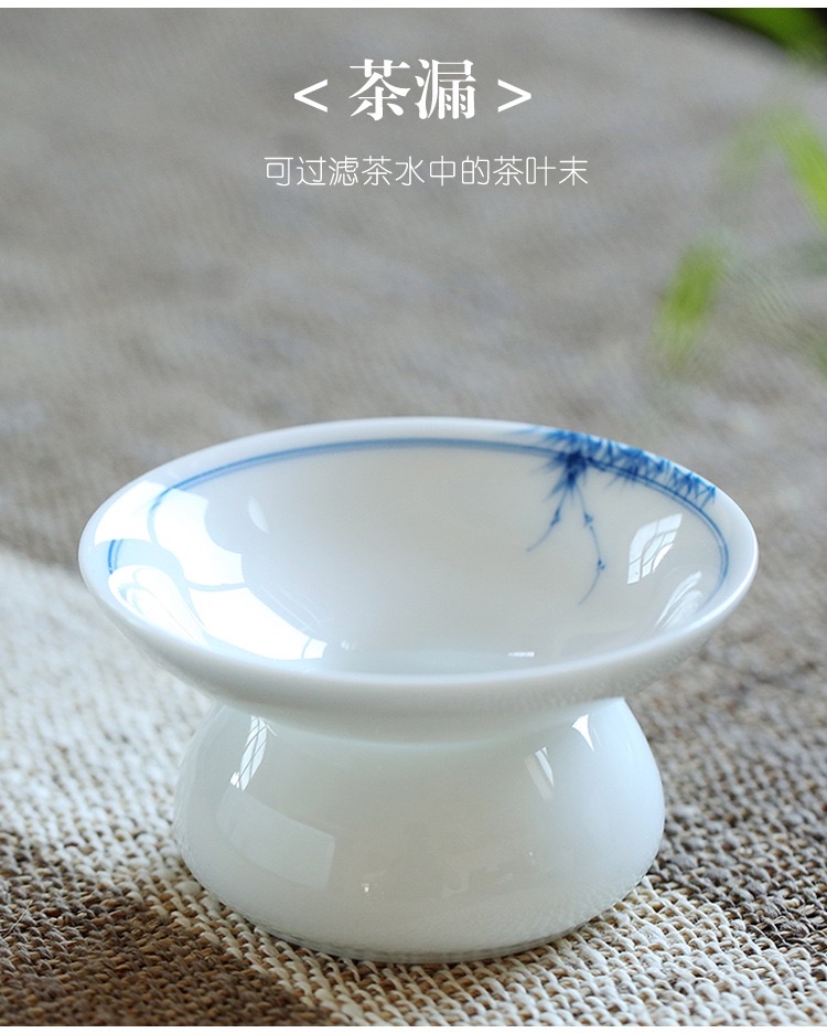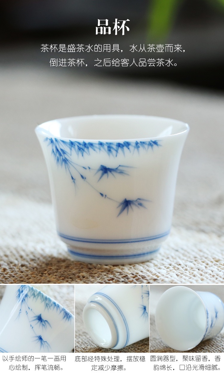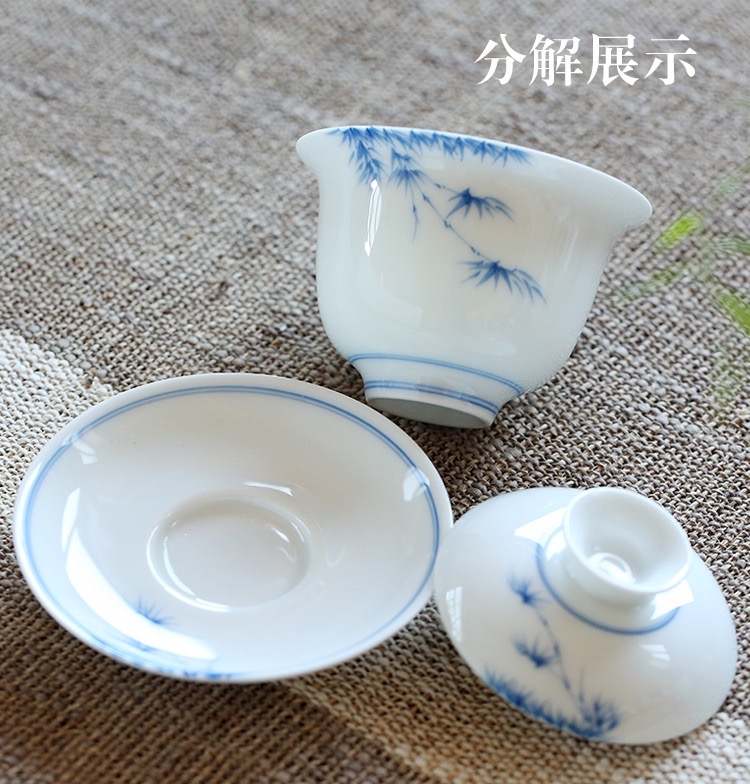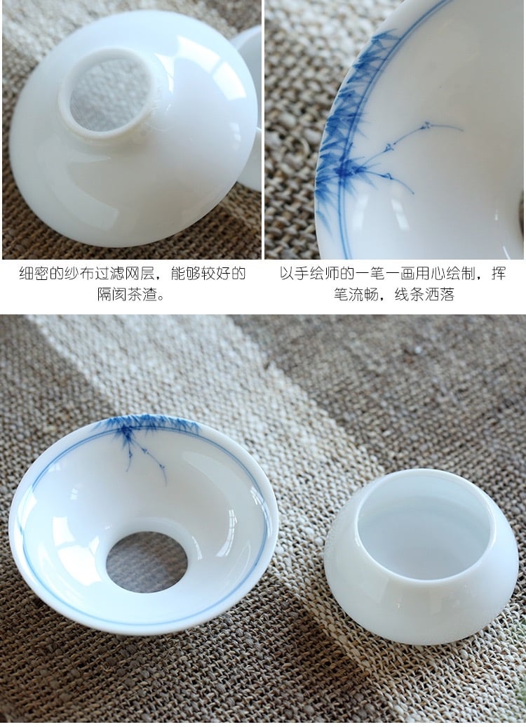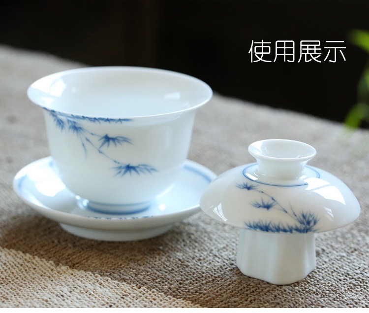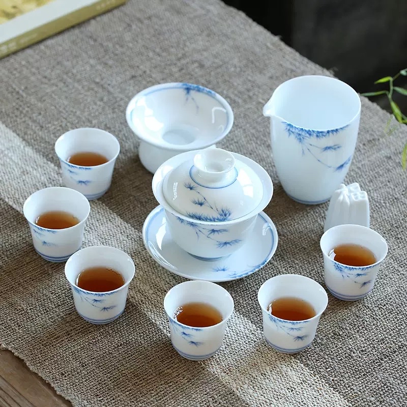 新款预售【玉泥手绘翠竹·茶具套装】白瓷茶具套装礼盒